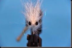 Turn the fly toward you and double check that the eyes are aligned from a forward facing view. This is very important because if the eyes are out of alignment, the fly will have a tendency to spin when stripped.